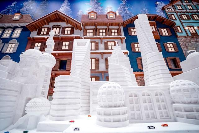 耀雪冰雪世界的陆家嘴高楼群雪雕。