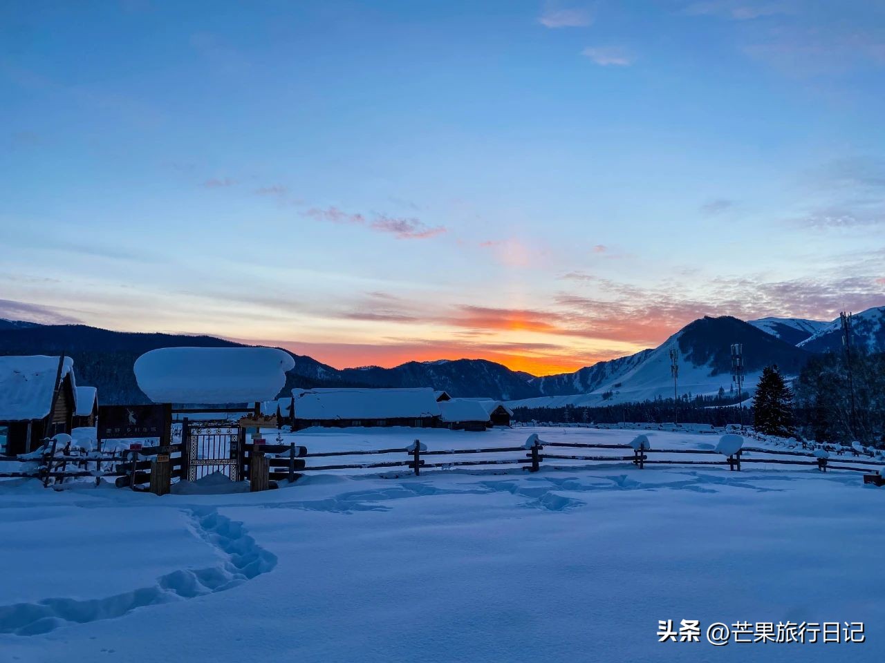 禾木在冬季是滑雪胜地,拥有亚洲规模最大的吉克普林滑雪场,降雪期持续半年之久,众多滑雪发烧友选择在此租赁居所长期滑雪。除了滑雪运动,禾木的雪景同样令人赞叹,成片的小木屋披着皑皑白雪,宛如一个个雪中仙菇,漫步其中仿佛置身童话冰雪王国,清晨时分还能体验泼水结冰的乐趣,总之这片雪域风光实在难以用镜头完全捕捉。