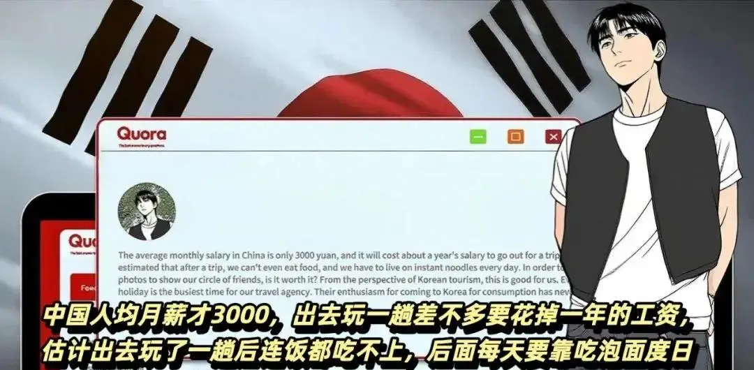 韩国网民表示,中国个人每月平均收入大约是三千元,外出游览一次,可能需要动用整整一年的收入。