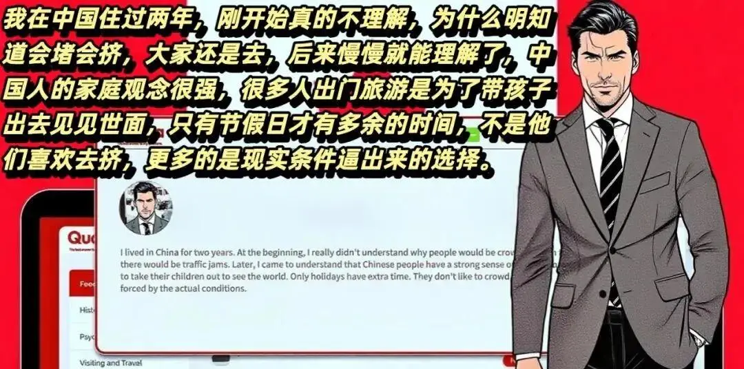 一位来自加拿大的网友表示,他曾经在中华大地生活了两个春秋,起初他难以明白,明明清楚假期期间出行会异常拥挤,为何众多民众仍旧选择踏上旅途。