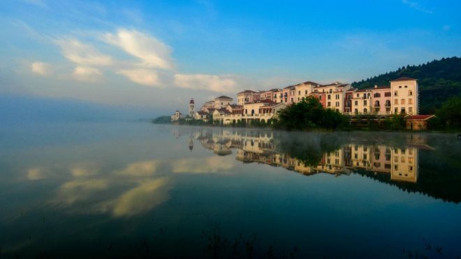 从鸡笼山往下走,走路就能抵达半月湖,那里是座国家小一型水库,只有农历十五十六的时候才能看到“半张圆脸”的月亮,国庆节去正好可以遇见“湖光映照秋景”的意境。