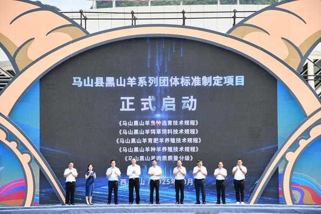 现场亦启动了《马山黑山羊良种选育技术规程》等五个团体标准发布活动,这标志着马山黑山羊产业已进入标准化、优质化发展的新阶段,具有划时代的深远价值。