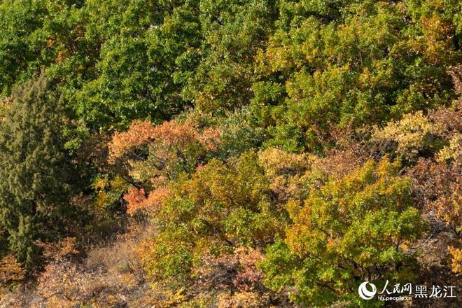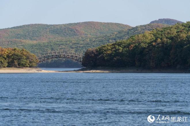 那个时段,镜泊湖边呈现出一派极美的景象。满山的树木色彩斑斓,红的黄的和紫的交织在一起,连绵的山峦因此显得格外耀眼。山上的叶子不再保持绿色,而是换上了多种色彩,像是自然界的颜料被打翻,整个区域因此显得格外迷人。景区内人潮涌动,游人们闲庭信步,四周充盈着谈笑声与快门声,处处透露出假日出游的喧嚣与兴盛,许多人特意前来欣赏这如诗如画的景致。