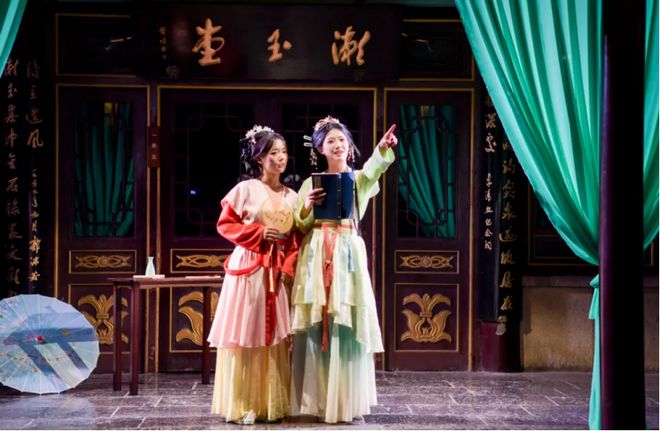 夜游的特别之处,在于将“一代词宗”李清照的文化内涵,进行了充分的再创造和场景化呈现。在李清照纪念堂内,可以进入这位才女的生活情境,体验她从“和羞走,倚门回首,却把青梅嗅”的少女情怀,到“生当作人杰,死亦为鬼雄”的爱国精神,完整感受她的人生历程。