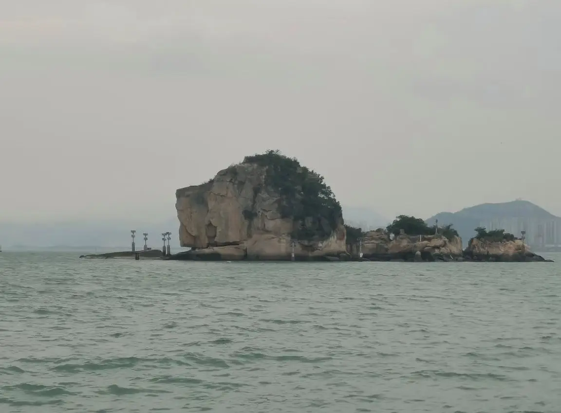 在长汀浴场沙洲或者明月台眺望远方,可以看到印斗石和厦门的著名建筑“双子塔”并排出现。