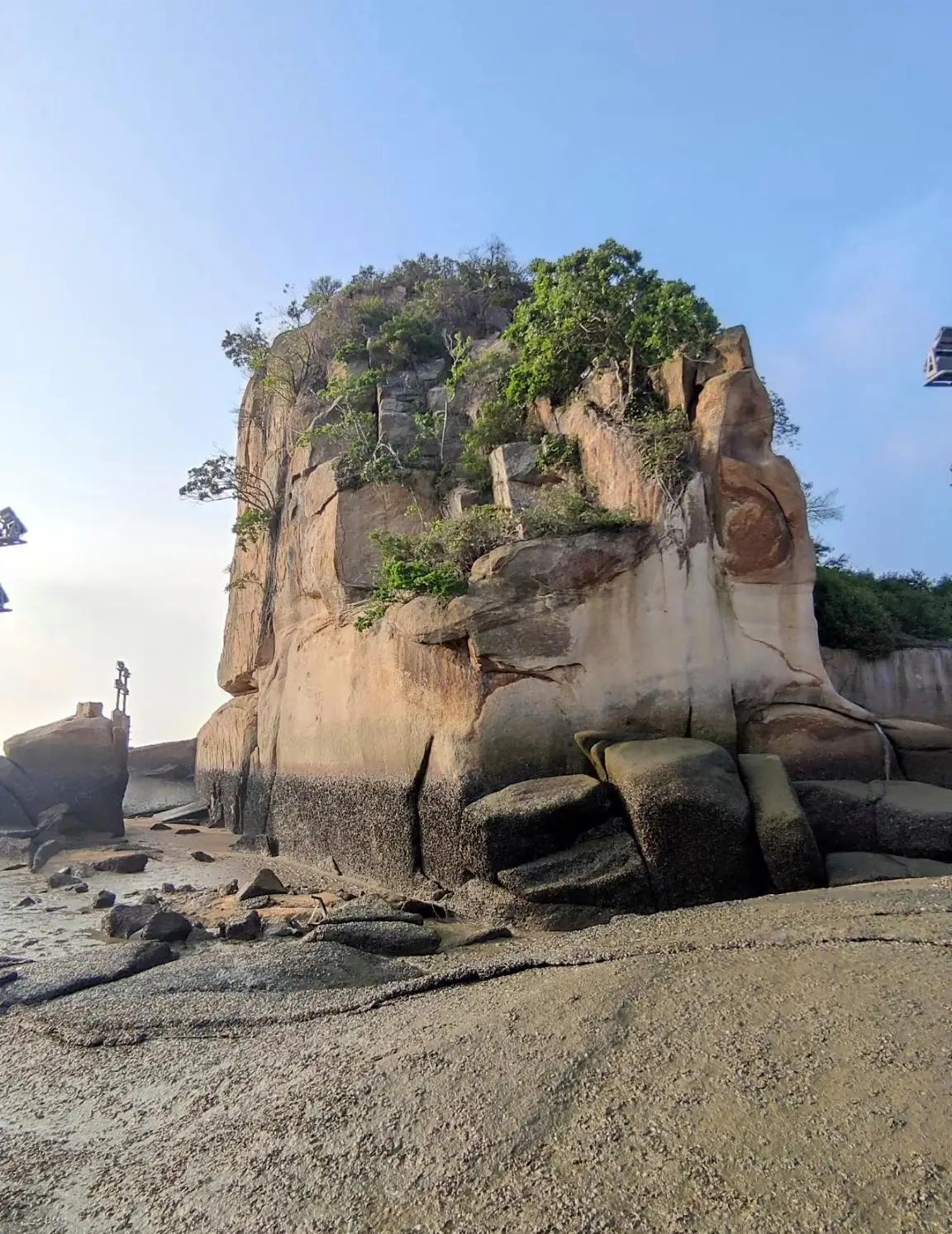 涨潮速度很快,特别是在初一和十六的时候,水位能达到五米多,石头很快就会被水淹没,曾经有游客因为停留拍照而陷在岩石顶端,后来需要海上救援人员立刻去救助。
