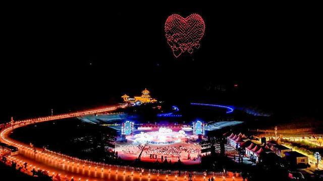 参观者于甘肃敦煌鸣沙山月牙泉所在景点参与“日落时分集体歌唱”的国庆特别节目,此消息由新华社发布。