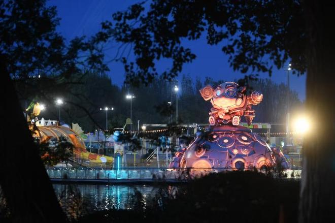 今年的灯光节充满未来气息。在朝阳公园北湖中央矗立着名为"魔方"的巨型艺术装置,它由一个直径13点5米的巨大正方体和浮在水上的环形基座构成。这个装置能够随时变换形态,既可以变成剧场,也可以变成表演场地或展览空间。通过3D裸眼技术呈现的光影效果,营造出一种神秘的"惊喜体验",将璀璨星空、梦幻乐园以及魔幻建筑的概念融入了沿岸居民的生活之中。