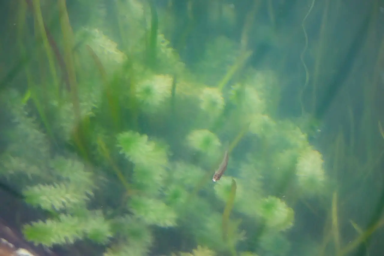 在此处,参观者能够观赏到矫健的小鲫鱼和色彩斑斓的鳑鲏,倘若时机恰当,还能目睹泥鳅与黄鳝在池底翻腾搅动,水黾在水面上轻盈穿梭,荇菜在微风中摇曳叶片,铜锈环棱螺借助其斧状足缓缓爬行,其螺旋形的壳上附着生机勃勃的藻类,这些藻类正进行着光能转化……秋季时节,水体清澈,万物争荣,共同构成了一幅完整且充满活力的自然长卷。