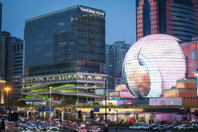 徐家汇商圈的球形屏幕。(海沙尔 摄)
