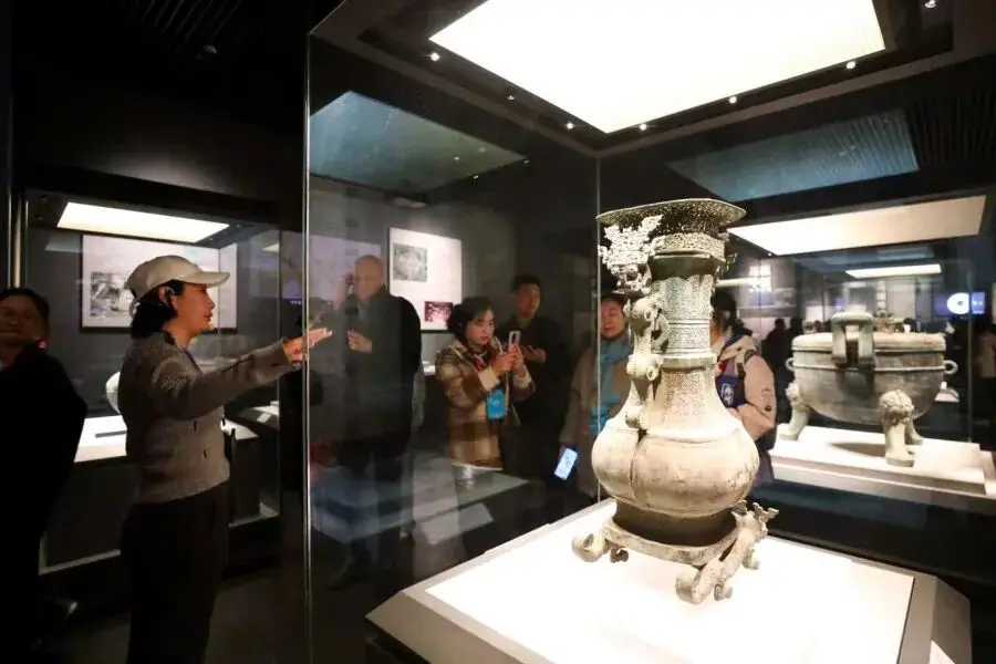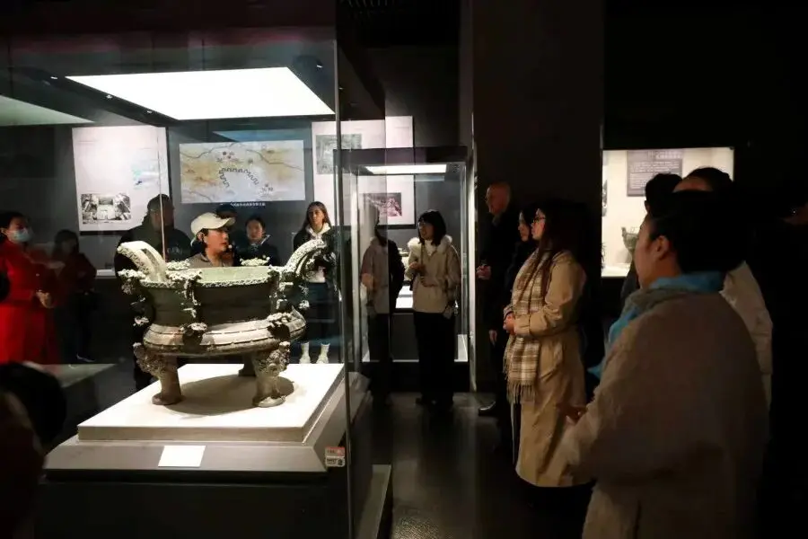 日上午,旅行商代表团首个站点抵达河南博物院,此乃始建于1927年的国家一级博物馆,其馆藏有17万余件文物,特色为史前文物、商周青铜器、历代陶瓷器、玉器,在讲解员引导下,代表团着重参观了贾湖骨笛、妇好鸮尊等九大镇馆宝贝,于讲解员的讲述里,触碰中原文明厚重脉络。