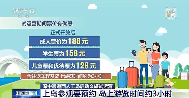 参观上岛得预约,大伙能够去关注微信公众号“深文旅发展”,或者购票小程序“深爱票”,以此实时获取相关信息,试运营阶段票价存在优惠,正式开放以后成人票价是188元,学生票是158元,儿童票以及优待票是128元,包含往返车程以及岛上游览时间大概为3小时。