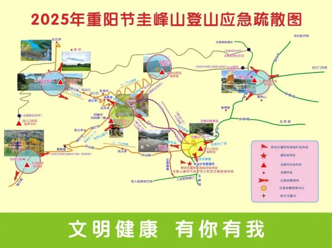要做好圭峰山景区的森林防火工作,要把治安管理工作做好弄扎实,要合理地去控制登山人群的流量呀,确保广大市民以及游客能够安全具备秩序地登山,在重阳节期间到圭峰山进行登高活动的市民游客需要注意下面这些要点: