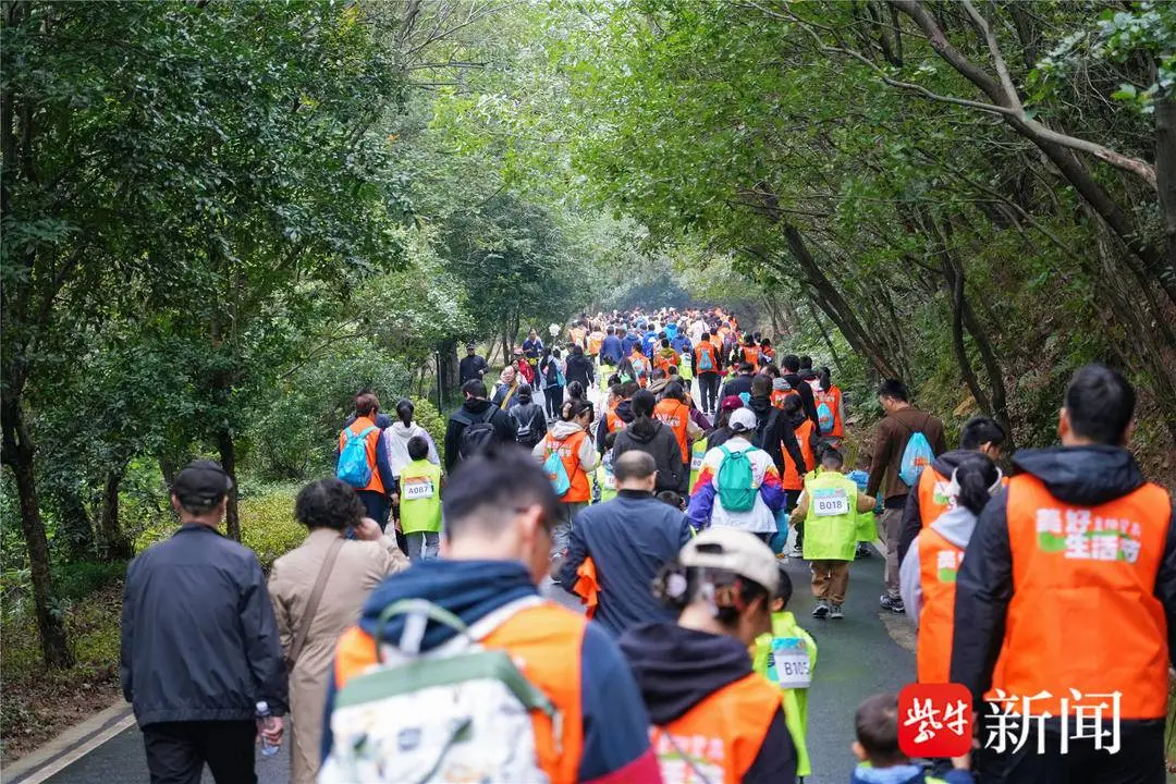上午9点多,出发号令响起,参与的亲子家庭一起涌向山门,朝着惠山森林公园进发,路途中,有可旋转的熊猫主题奖牌,供孩子们登顶收获成就感,还有两只大熊猫人偶领跑,一路上搭建了熊猫元素的主题背景板、龙门架与打卡框,成为家庭合影热门点位,登山途中,“小手牵大手”温馨画面随处可见,家长与孩子一同循着秋日山路前行,把欢声笑语洒在林间,用脚步丈量自然,将秋日美好记忆刻进亲子时光。