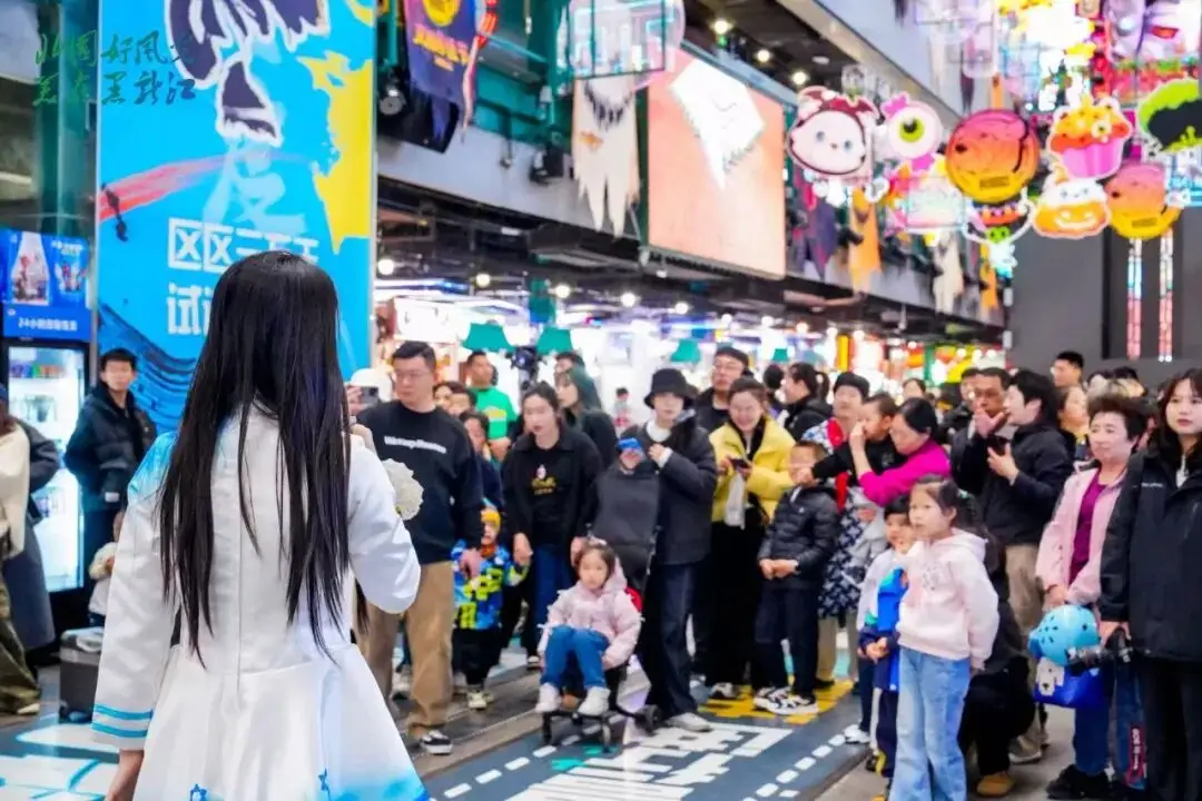 10月26日上午,鸡西文旅推介团进入大连冰山慧谷文化产业园区熊洞街,一场闪耀着东北地域独特风情以及鸡西特色的快闪表演精彩呈现,吸引不少市民停下来观赏、拿出相机拍照打卡,现场氛围热烈,使得大连市民直接体会到鸡西冬季旅游里的活力与热情。