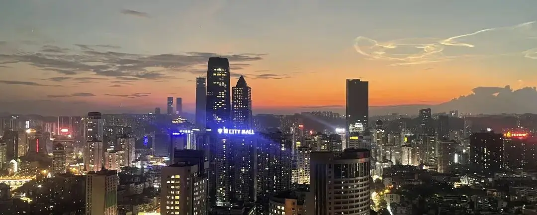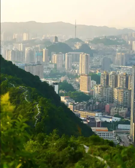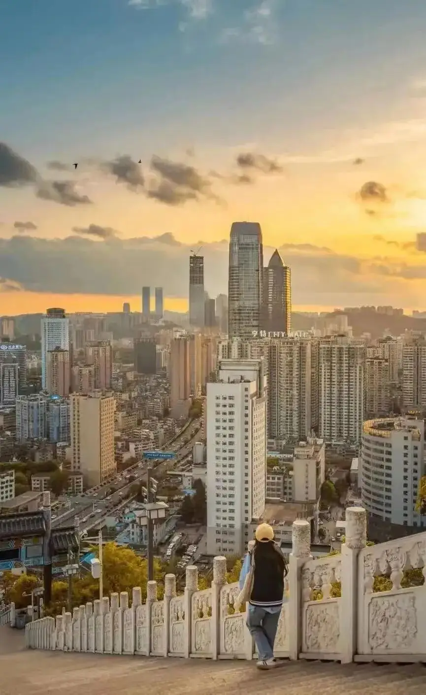 这里同样是能欣赏日落的绝佳所在,有绿树,有石梯,还有背后黄昏时分的贵阳老城,它们共同构成了一幅城市与自然相融合的美丽画卷。