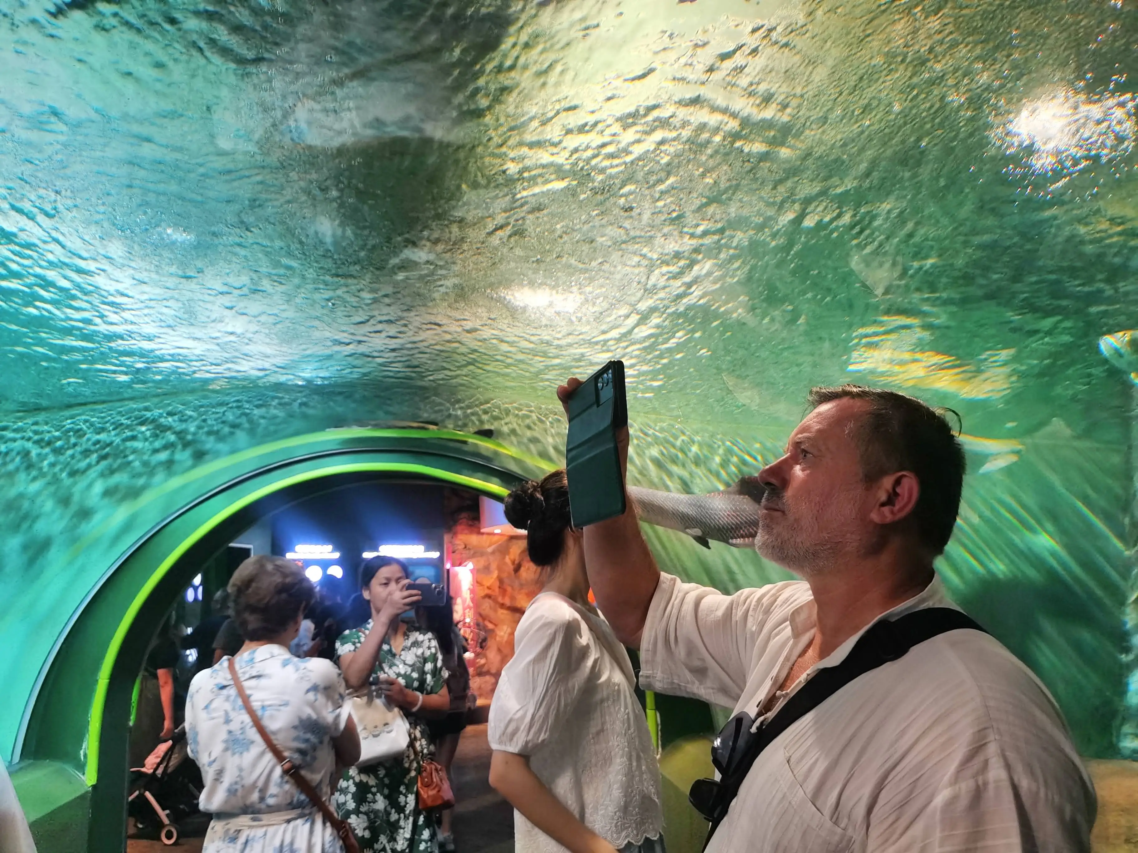 8 月 27 日 ,有一名人员 ,其为此名入境游客 ,去到上海海洋水族馆进行参观 。新华社记者陈爱平拍摄此景 。 摄