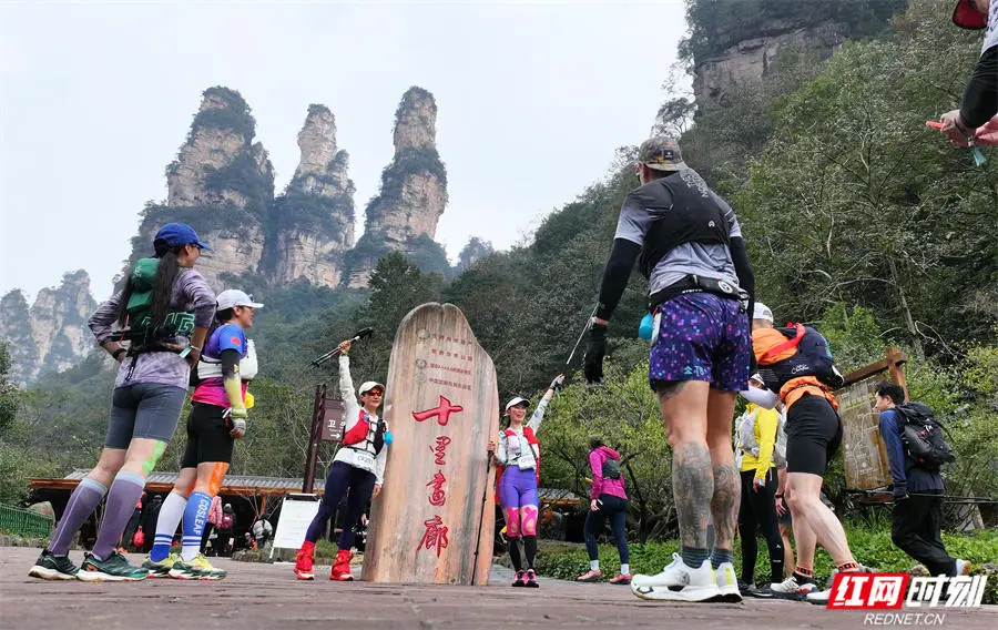 越野跑,世界系列赛,2025年,张家界武陵源站,开启赛事,选手于十里画廊进行打卡,(邓道理 摄)
