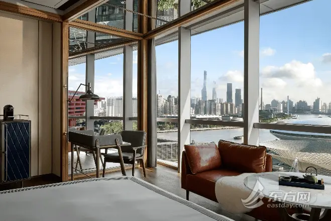 酒店有254间风尚客房和套房,延续品牌标志性现代工业风格及居家风尚,每间客房都有落地窗,能把黄浦江景和城市天际线全看到,木制地板配手工地毯、金属细节和暖色调定制家具,还有展馆艺术灵感装饰,格调尽显,客房内大理石浴室、精选迷你吧、戴森吹风机和咖啡机等舒适设施都全,更有标志性“音乐入眠时刻”晚安礼遇和专属播放清单,让宾客在光影与音乐里沉浸魔都夜色。