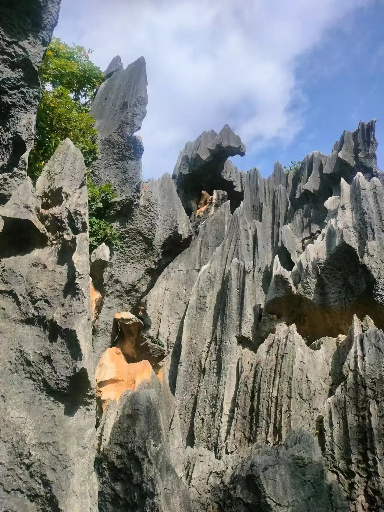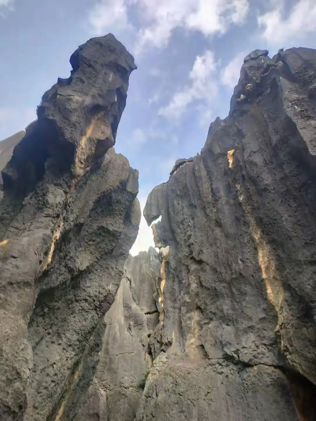 一进入大石林,人马上就显得渺小了,两旁石峰陡然拔地而起,高耸森然如兵器一般,朝着天空直直刺去,它们挨在一起站立着,紧紧凑成幽深的石巷,仅允许一线天光从头顶狭小的地方漏下来,在湿漉漉的青苔上印出斑驳的影子,脚下的小径弯弯曲曲,好像没有尽头,引领人深入到这迷宫般的腹地,石头的纹理是记载岁月的书页,被风霜雨雪一次次摩挲,布满深深的皱纹与裂痕,触摸的地方带着一片沁人的凉意,坚硬而且沉默,我突然想到,这些石头到底见过多少次沧海桑田的变迁,才修炼成如今这般宠辱不惊的样子?它们兀自站着,不言不语,便是永恒。