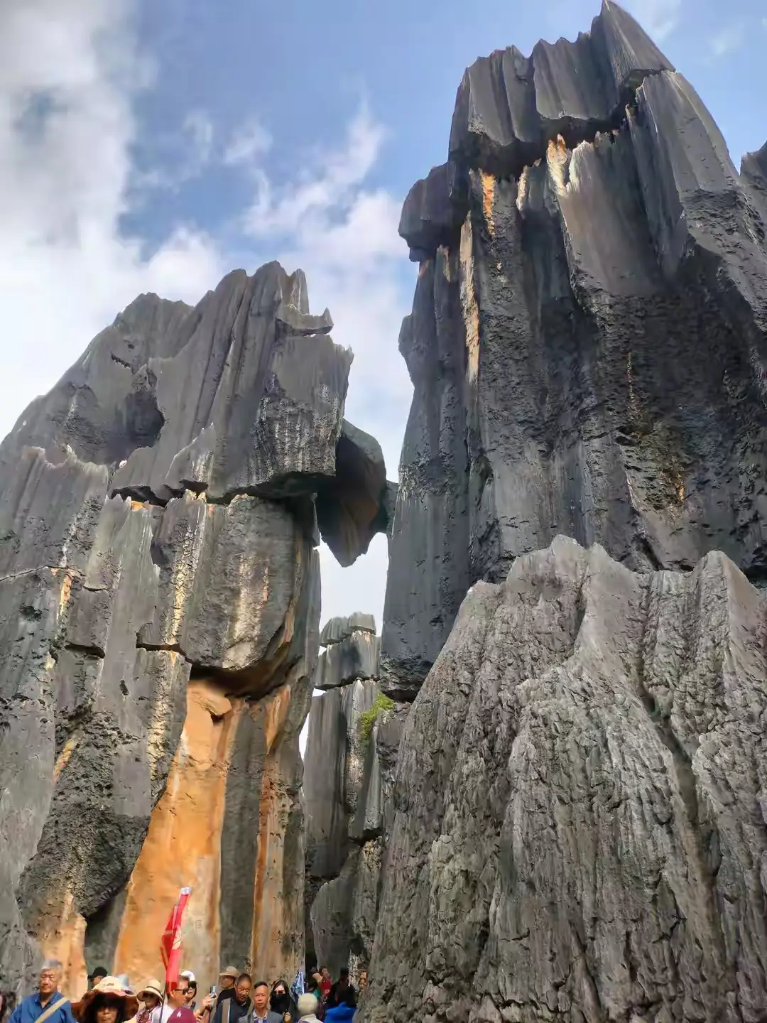国庆节过后,俏乐一族于重阳节前夕,召集拢扬州以及外围区域的将近800位旅友,划分成10多拨次接连发团,送去云南游览观光。笔者参与的是第三批,由严云等4个人带领队伍,80多号人,声势浩大,飞向昆明(俏乐一族一直秉持“一价全包.零购物”的理念,值得被信任。严云也成长为一名厉害的领队)。首个站点是石林风景区,重阳节当天清晨,分别乘坐两辆大巴,朝着石林进发 。