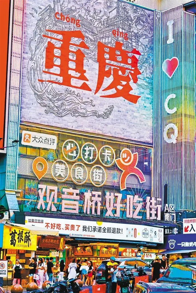 10月11日进行拍摄的,是观音桥商圈的“我在重庆”大街区,该街区属于2025年央视春晚重庆分会场的拍摄点位当中的一个,街区里面的巨型广告屏,平均每天会吸引差不多一万名游客,前来打卡拍照。
