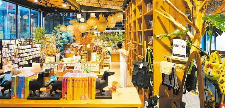 10月11日,游客在观音桥商圈一文创店选购商品。