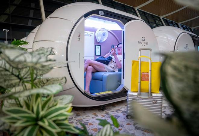 浦东机场T2国际出发候机区休息舱。孟雨涵 摄