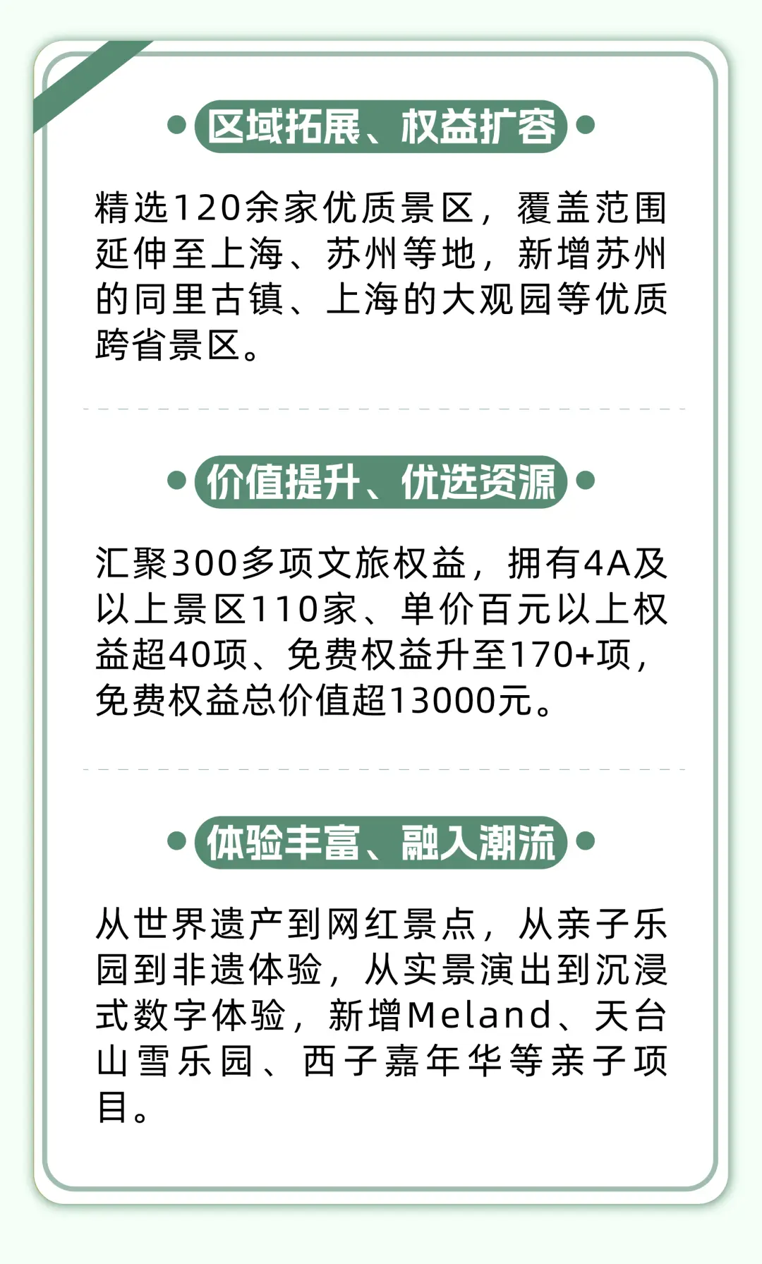 文旅惠民卡2026版,持有惠民的初始之心,着重于“区域拓展、价值提升、体验丰富”,进而作出全面升级,用户只需要付出199元每年,就能够享有包含“吃住行游购娱”的全程增值服务。
