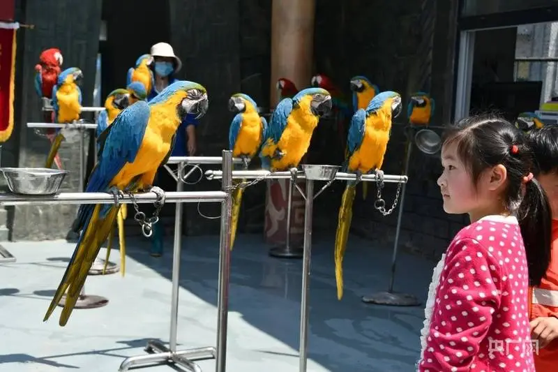 在鹦鹉表演区域,有着一群颜色绚丽的“表演者”,它们在训练员的指挥之下,努力地进行骑车表现、踢蹬球儿之举、搬运物品而为、投篮动作展现、套圈行为施展、轮滑活动开展、提着桶子之态、单杠之上的亮相、凭借爪子直立行走这般种种,并且能够和小朋友们进行亲昵互动,从而引得孩子们阵阵大笑。