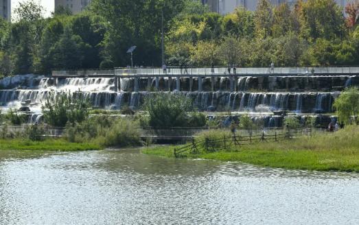 西流湖叠瀑处在农业路高架桥南侧,它也在西流湖西岸,最近已经恢复开放了,它那秀美的景色肯定会让你留恋得不想离开。站在玻璃廊桥上,能够欣赏到水花四处飞溅,还可以聆听水声发出轰鸣。那份宁静跟瀑声的轰鸣相互交织,营造出一种独特的壮美氛围,吸引着游客停下脚步留恋徘徊。