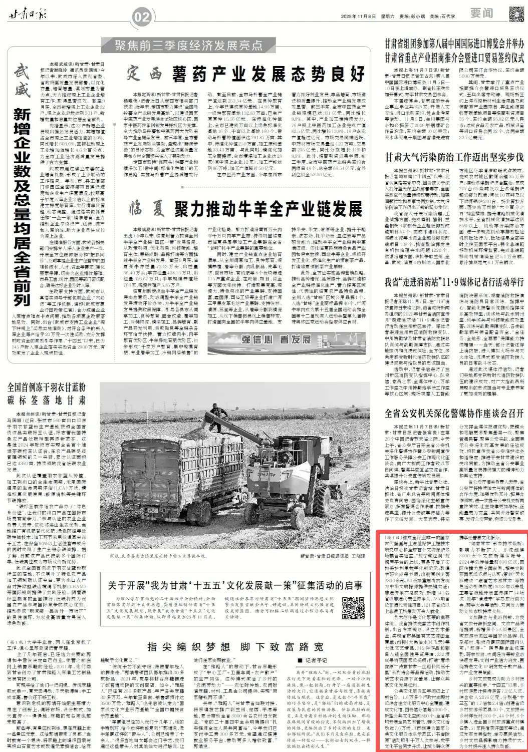 今天下午,省政府新闻办召开了“决胜收官‘十四五’ 争先进位话发展”主题系列新闻发布会,这个发布会是省文旅厅专场,记者从这个专场了解到,在“十四五”时期,省文旅厅确定了文化强省、旅游强省的目标,还把“八个一”文化品牌当作抓手,全面做好各方面统筹,让文化事业、文化产业以及旅游业能够协同发展,这样做不但给全省经济社会高质量发展持续注入了动力,还构建起了坚实的文旅支撑,以此全面建设幸福美好新甘肃,开创富民兴陇新局面。