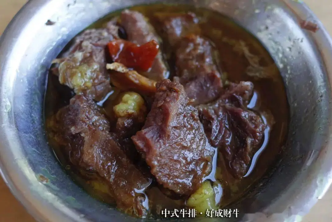 处于炖煮这个过程当中,存在有着蒜,存在有着姜,存在有着八角,存在有着草果这些之类传统的中式卤肉经常会用到的香料,同时还存在有着以姜黄作为主要味道的咖喱粉。咖喱粉不但给泉州牛排带去了有别于红烧牛肉的独自的风味 ,还造就了它呈现金黄的那种色泽。
