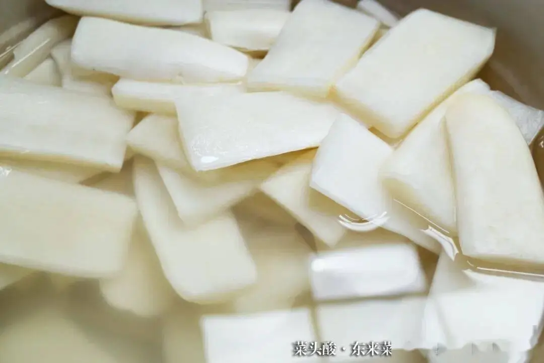 名为菜头的东西,实际上乃是当地人对于白萝卜的称谓。把白萝卜切成厚片,浸泡到用醋制作而成的酸汁里腌制一段时日便形成了。做好的菜头酸之中,萝卜完全不存在任何纤维,具备酸酸甜甜的口感,呈水汪汪的形态,极为爽脆。