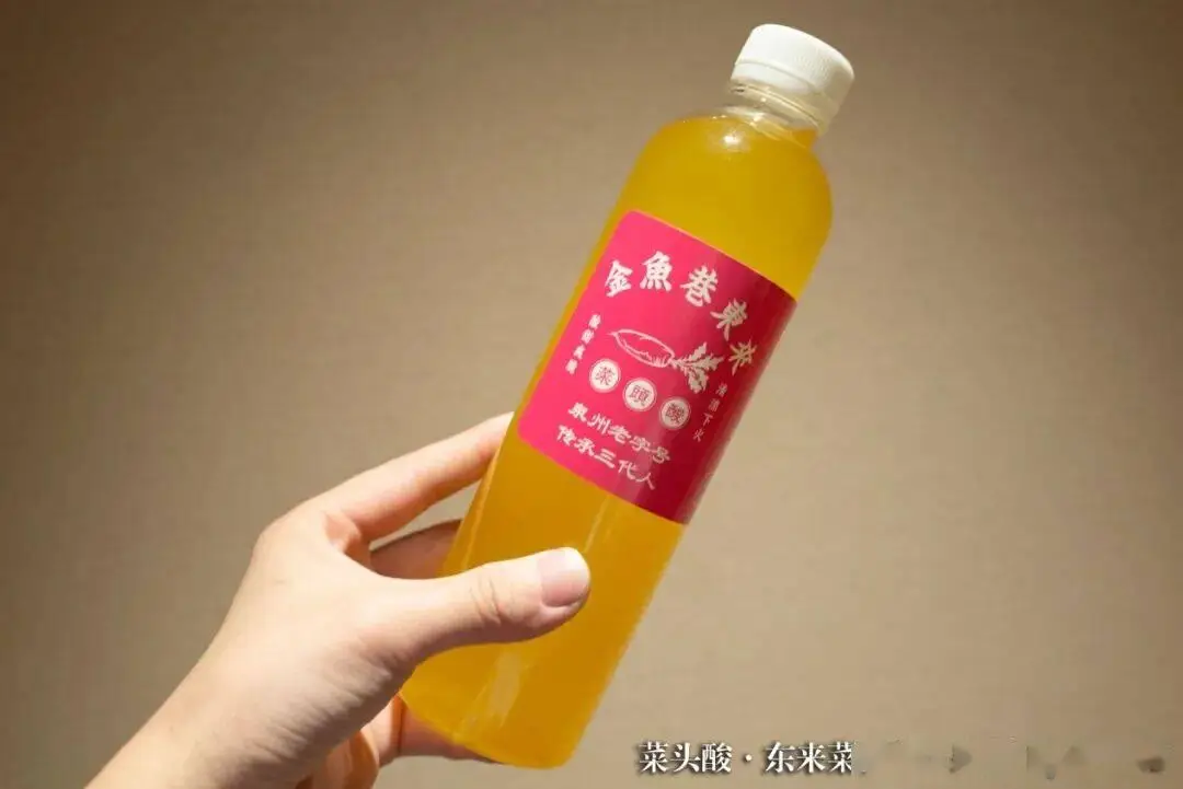 店里除了菜头酸自身,酸水同样会装到瓶子里售卖出去,我选购了最为典型的萝卜制成的酸性水溶液去品尝新鲜口味。然而没料想它不但酸酸的还甜甜的并且带有一点咸味儿,刚把一口吞下肚子,头皮随即就产生发麻的感觉,我不太能够承受得住这般滋味。