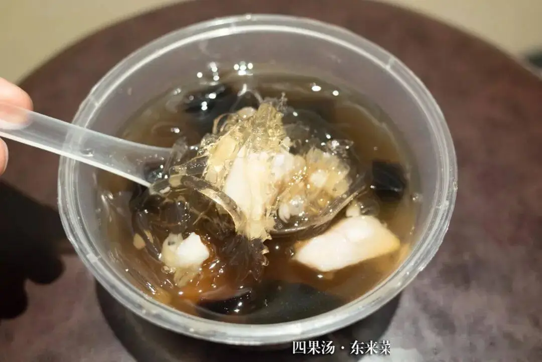 所幸聪慧如我的我顺便购置了四果汤,那清爽且甘甜的口感挽救了我的性命。四果汤,它也是传统类别之中的甜品,而其中最为特别以及无比经典的,必定当属石花膏了。