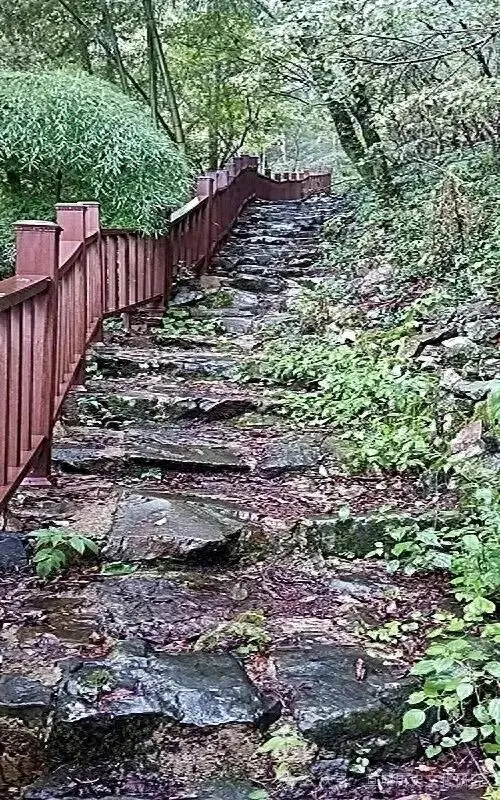 当前存在的登山栈道,处于豆腐台的旁边位置,行人只要于豆腐台那一带的古道上面行走一段路程,接着转而走起栈道,同样能够抵达山顶。转过“豆腐台”之后,向前行进大概两公里,就能够到达铁瓦寺上院。在寺的前面挺立着两棵高大的古木:其中一棵是银杏,另外一棵是罗汉松。罗汉松实际上的名字是江南铁杉,在铁瓦寺建造寺庙的最初之时就栽种在了此地,有着将近1400年的树龄,铁杉因为遭遇了山火,一半出现了损伤,而另一半却依旧是苍翠且保持常青的状态。古老的道路悠悠长长,古旧的树木呈现出斑驳的样子,古老的寺庙显得十分静谧,它们共同见证着人世间岁月无穷无尽的沧桑变化,句号。