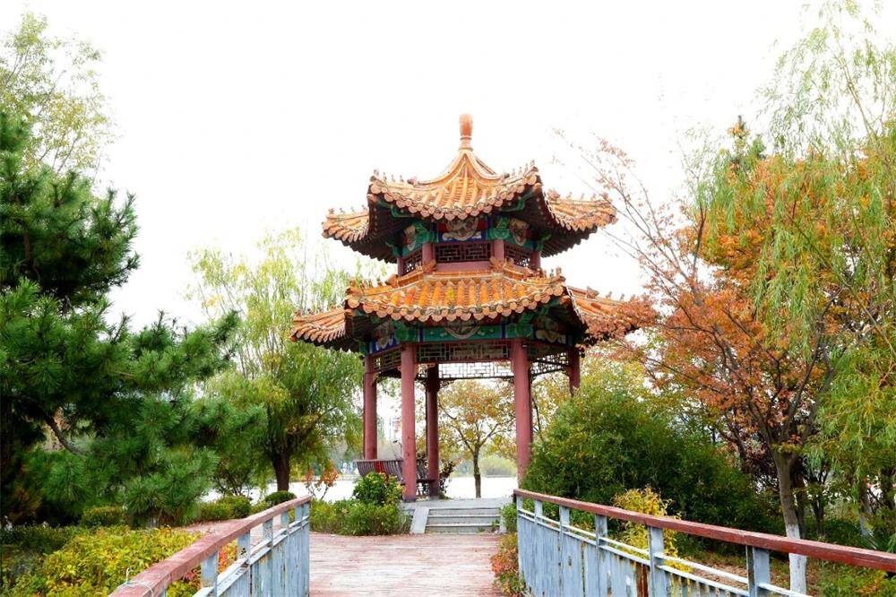 于河畔缓缓游走,往昔之时那喧嚣已然渐渐消退不见,阳光倾洒之下河水泛出诸多粼粼的波光,河中央的那座凉亭沉默地静静直立着,顺着青石板慢慢靠近迈进,古朴的檐角落笔之处沾染集聚了些许秋霜,和身旁那些已呈现泛黄又泛红状态的树叶相互交错,共同构造形成了一幅色彩缤纷绚烂多姿的画卷。