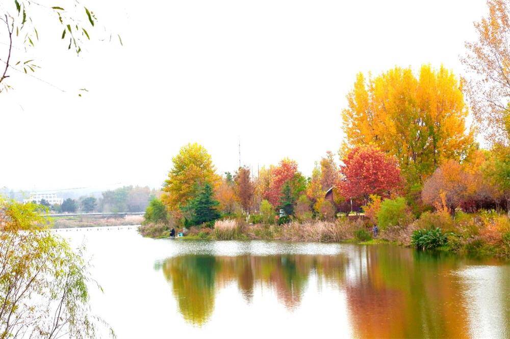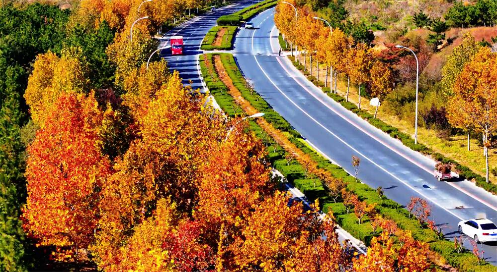 威海临港秋色醉人:枫红银杏金,河畔漫步赏动态油画
