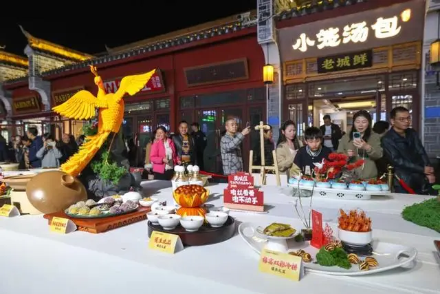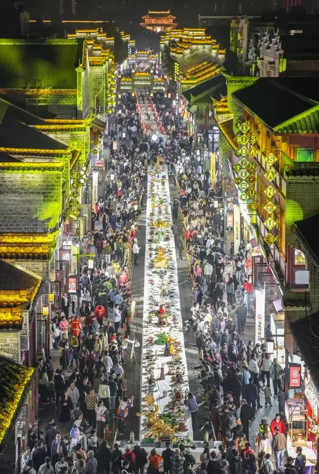 襄阳分会场举办了一场盛会,这场盛会将文化、美食以及互动体验融合在一起了 ,它唤醒了古城有着千年历史的记忆 ,百名NPC穿着古风华美的服饰在街巷中巡游 ,百个古风摊位沿着街道铺展开来 ,这些摊位汇聚了手作非遗、文创好物以及特色小吃啦 ,百米长桌宴以三国为主题来设宴 ,还把军事文化融入到时令菜肴之中 ,百盏孔明灯在夜空一起放飞 ,寄托了人们对古城美好的祝愿 。