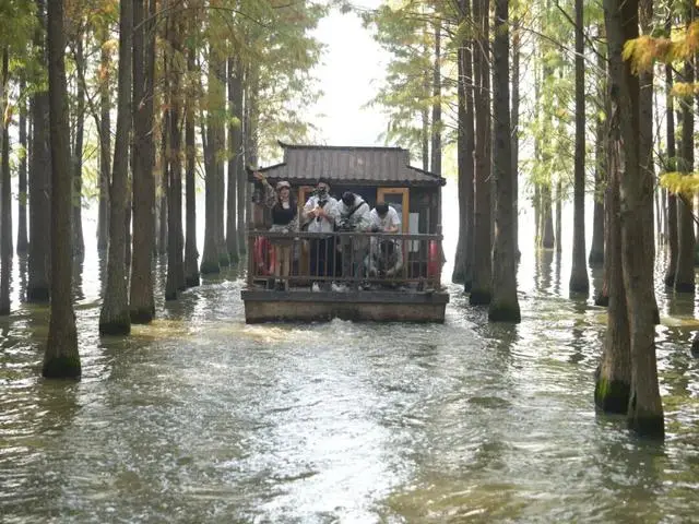 那一队采风的人,先前进入了梦里水乡,之后又踏入沔阳小镇,在水上森林里划船前行,观看了一场水上婚礼,还欣赏了大雁相伴飞翔以及精彩的飞车绝技。为了让活动效果得到提升,一场大型的行进式融媒体直播在沔阳小镇同时开启,吸引了来自全网的560万人次在线上观看。