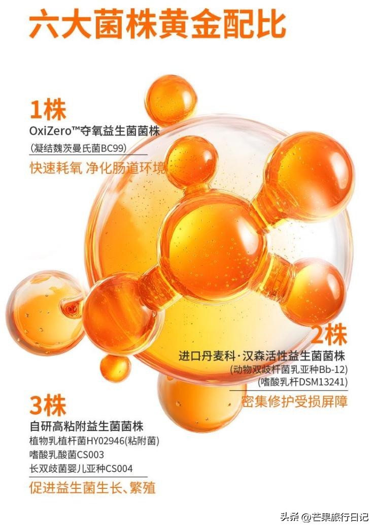 它厉害的地方藏于菌株的“协同作战”之中,如同给肠道派遣了三支精锐部队,凝结魏茨曼氏菌BC99率先充当“先锋”,于肠道内除去氧气,不但能够抑制有害菌生长,还为后续的有益菌种清理道路;远大生命科学集团自主研发的植物乳植杆菌作为“主力”,其黏附定植能力相较于传统的LGG菌株要强5倍,稳固地守住肠道的“阵地”,推动益生菌生长与繁殖;最后来自丹麦科.汉森进口的动物双歧杆菌乳亚种Bb-12、嗜酸乳杆是“修护兵”,专门对肠黏膜进行修补,修复受损的肠道屏障!这三者一旦结合在一起,马上就会形成一个完整无缺的闭环,不管是属于重油的饮食方式,还是出现水土不服的状况,都能够应对得游刃有余,毫无压力。