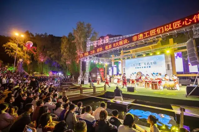 一次一步演绎非遗,一条溪流尽显繁华。围绕“山水重渡 非遗生辉”这一主题的大型非遗展演盛会连续两年举行,每天于7大舞台紧凑上演110多场非遗节目,全年免费展演超过300天,非遗魅力时刻在线。创新举办“万人非遗美食品鉴大会”,由当地村民经技艺培训打造的槲包、栾川豆腐、橡子凉粉、狼戴帽等特色美食一同亮相,使游客在舌尖感受非遗烟火气。