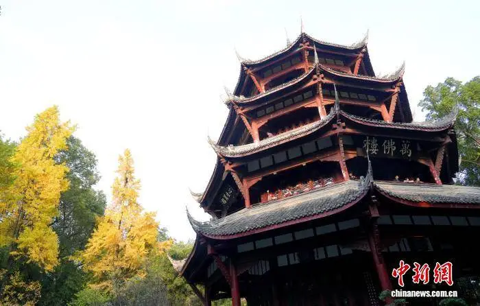 11月23日,在四川成都,于成都杜甫草堂博物馆内有万佛楼,立冬过后,成都就逐渐步入了银杏的观赏季,在大街小巷、公园校园,那一簇簇的金黄出现,给这座城市增添了无穷的浪漫跟诗意,摄于中新社记者安源 。