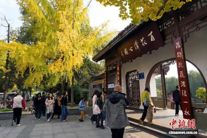 成都银杏观赏季开启:杜甫草堂金黄漫天,古装游客拍照留念