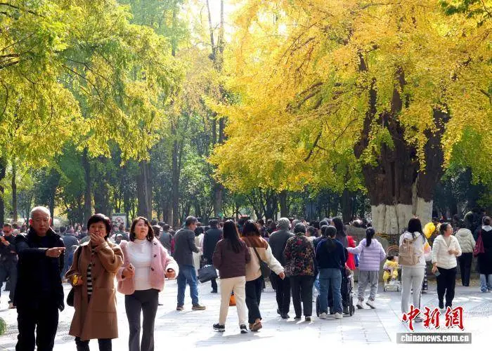 阳历11月23日,于四川成都之地,有市民朝着成都市百花潭公园前去游览。立冬节气过后,成都就逐渐地步入到了银杏的观赏季节之中,不管是大街小巷之内,还是公园校园里头,那一抹又一抹的金黄之色,给这座城市增加了无穷无尽的浪漫以及诗意。中新社记者为安源所摄 。