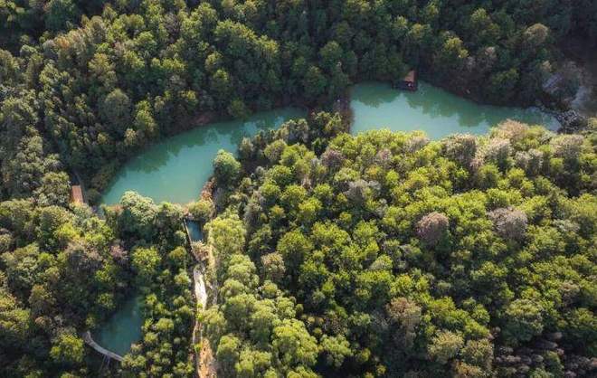 是优良的生态环境,作为这一切诗意得以安放的物理以及心灵基底,从而为旅居提供了回归本真的可能性。九凤山生态旅游度假区,作为森林康养之旅的主要目的地,占地5000余亩,此时原生态植被完好。百年梨园在四季的轮转之中,呈现出花海、绿荫、硕果以及疏枝的不同景致;被称作“都市小九寨” 的九凤瑶池,其池水随着季节变幻色彩,与山林倒映成趣 。