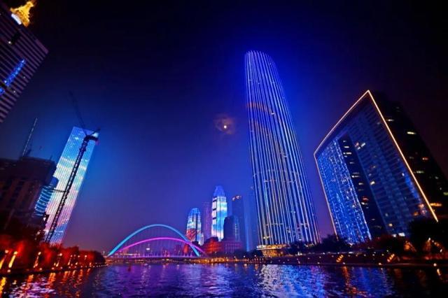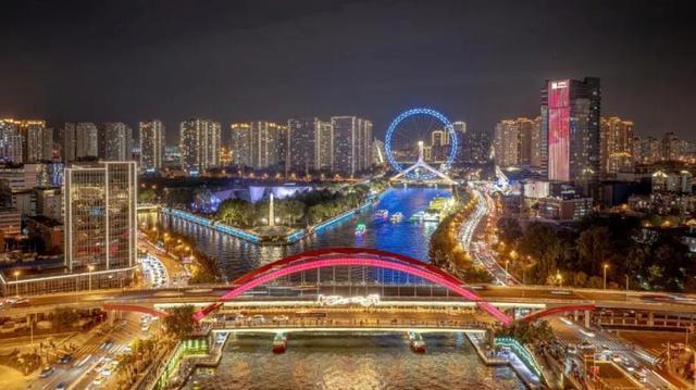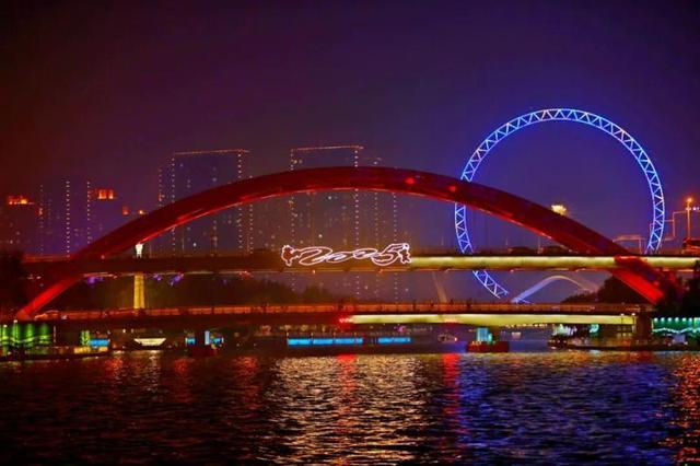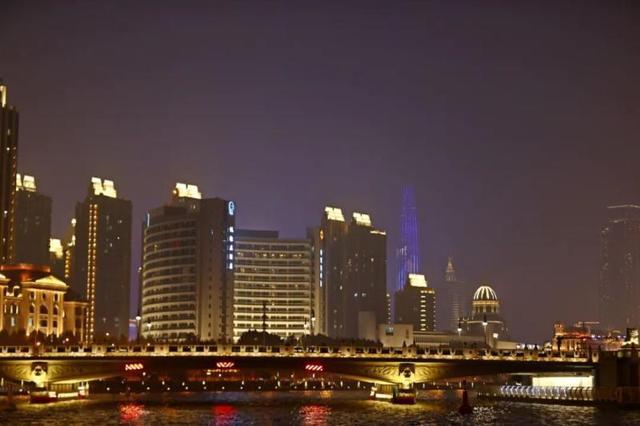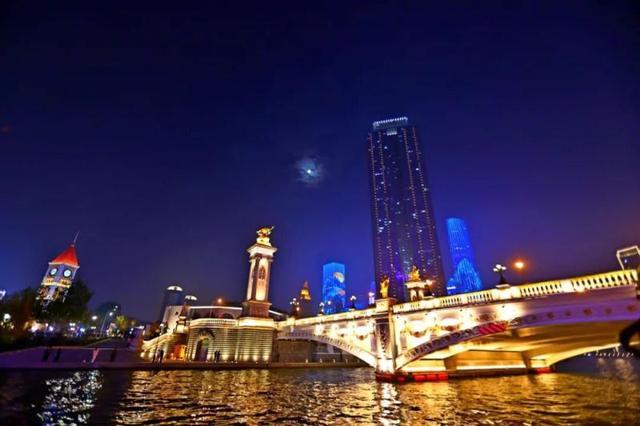 有这么一场城市灯光秀,它有的时候映照着桥梁那灵动的线条,有的时候又衬托着历史建筑那厚重的轮廓,最终,它使得傍晚时分的海河变成了一幅流动着的光影画卷。