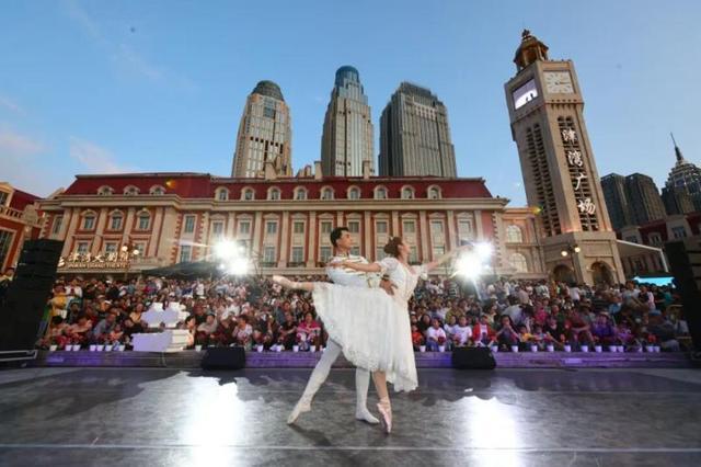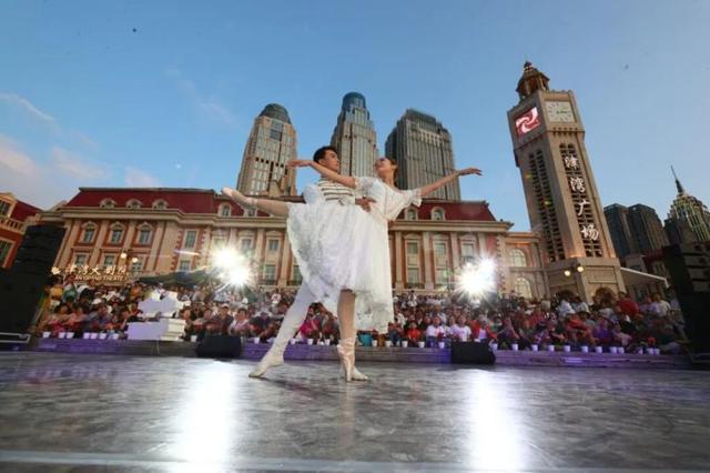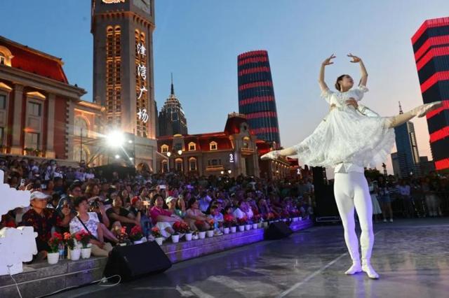 芭蕾舞者那轻盈的身影,于津湾码头广场之上,和“城市会客厅”璀璨的灯光相互映照,这般优雅仿佛是一场人们不愿醒来的梦,。