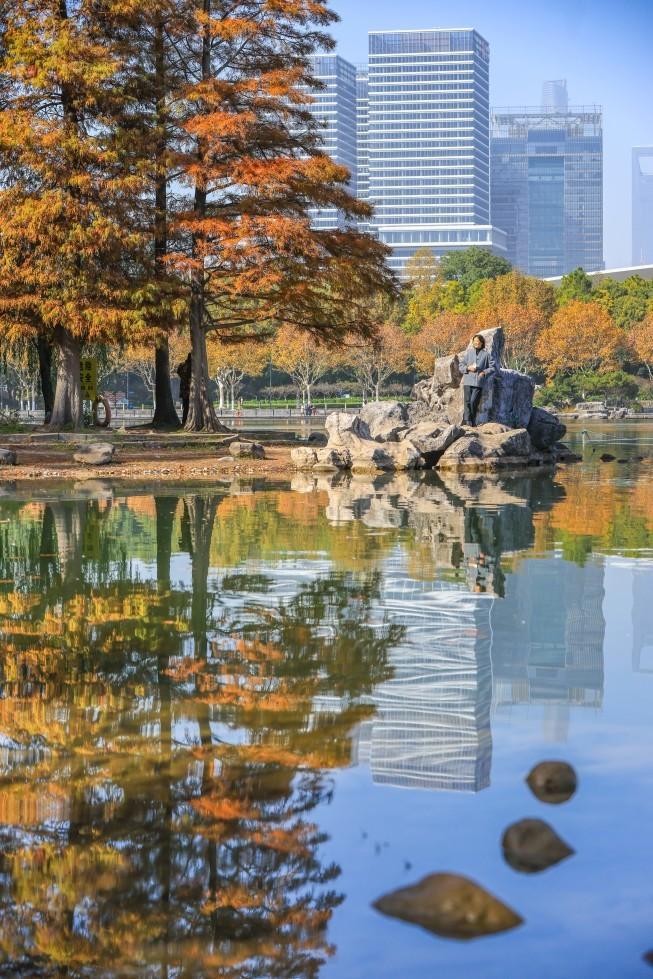 有着秋色的浦东城市建筑群,和有着韵味的江南园林,二者自然是存在很大差别的。前滩体育公园是城市秋色的代表之一,通向该体育公园的沿路两侧,银杏与之交织,红杉与之交织,栾树也彼此交织在一起,它们随着江风晃动,倘若站在稍高的楼层,越过满树呈现出的颜色,能够看见江里往来的船,随便拍摄一张就都是一幅活的风景画。